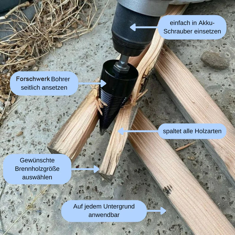 für menschen, die größere mengen holz vorbereiten müssen, bietet der bohrer eine effiziente, sichere und arbeitssparende lösung.