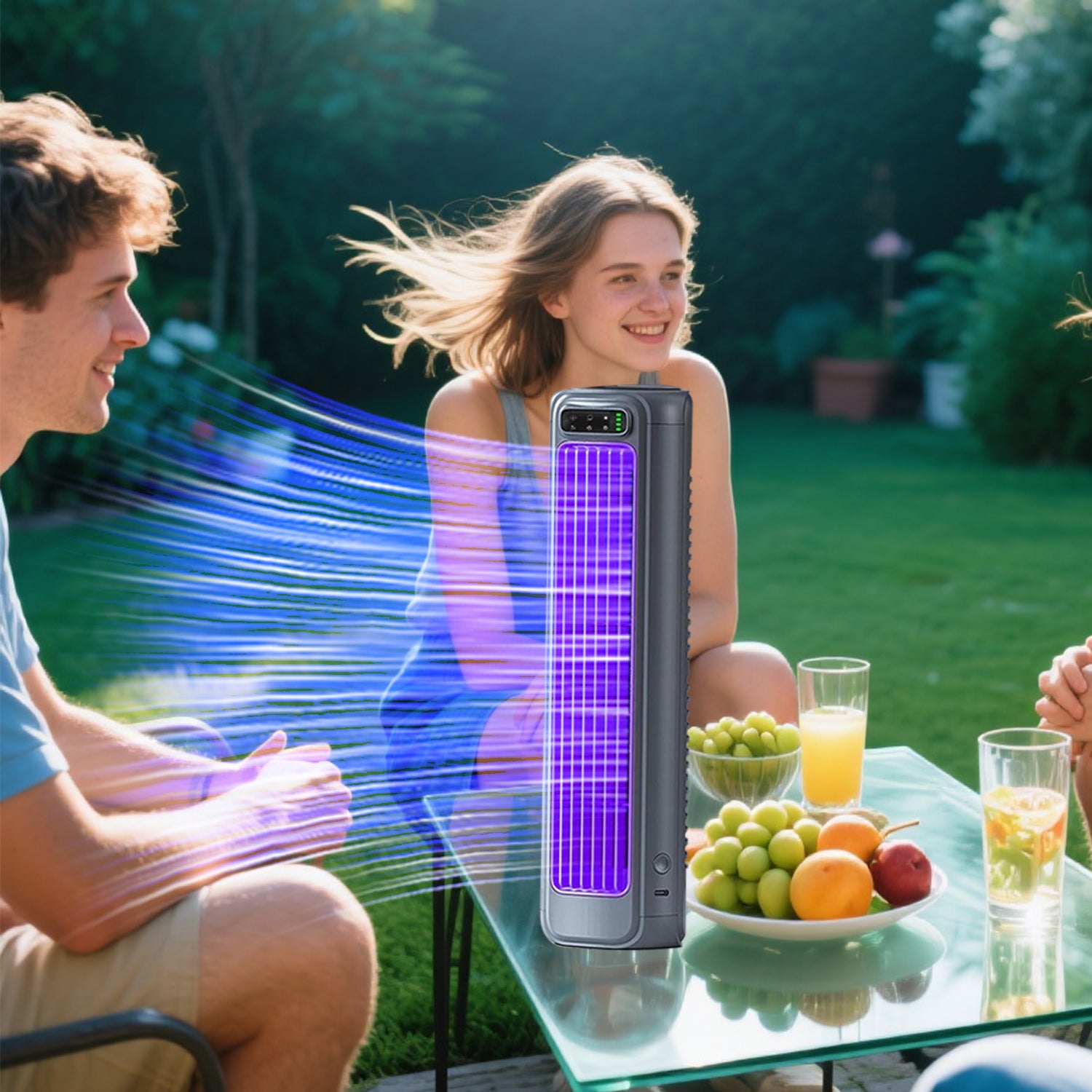 Es kann aufgestellt, vertikal oder horizontal platziert werden – überall dort, wo Luftzirkulation benötigt wird. Einige Modelle unterstützen USB-Aufladung oder eine kabellose Verbindung und eignen sich daher ideal für Reisen, das Büro oder den Einsatz im Freien.