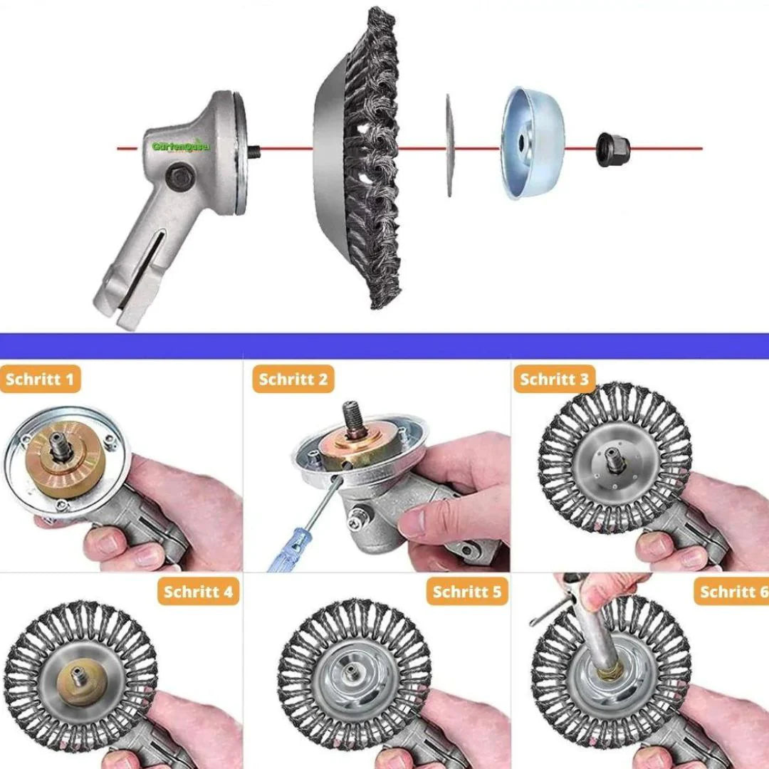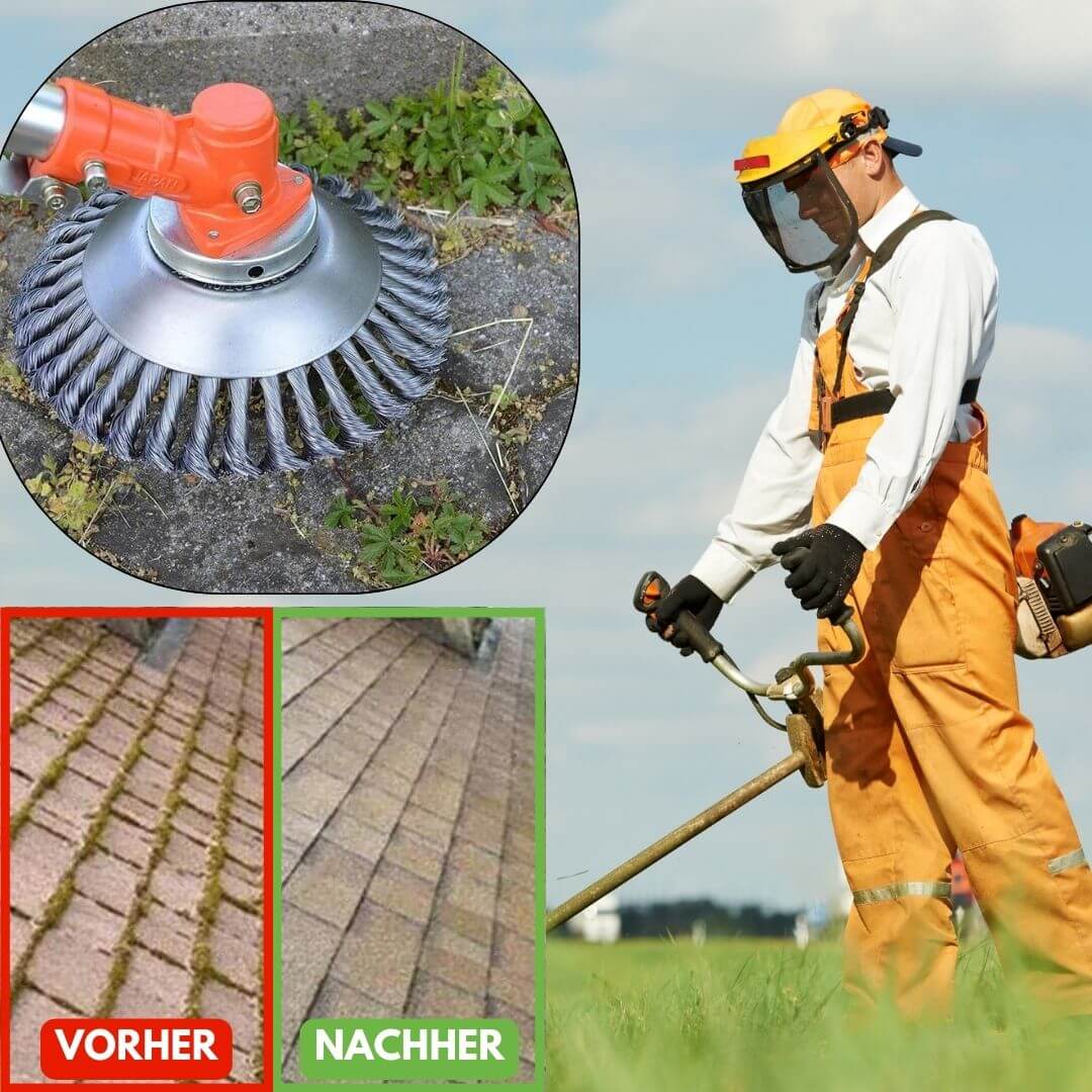 Warum: Die Kombination aus Nylonfaden und Metallmesser meistert hohes Gras, Unkraut, Wildwuchs und sogar dünne Äste an Zäunen, unter Hecken und auf unwegsamem Gelände, wo der Rasenmäher nicht hinkommt.